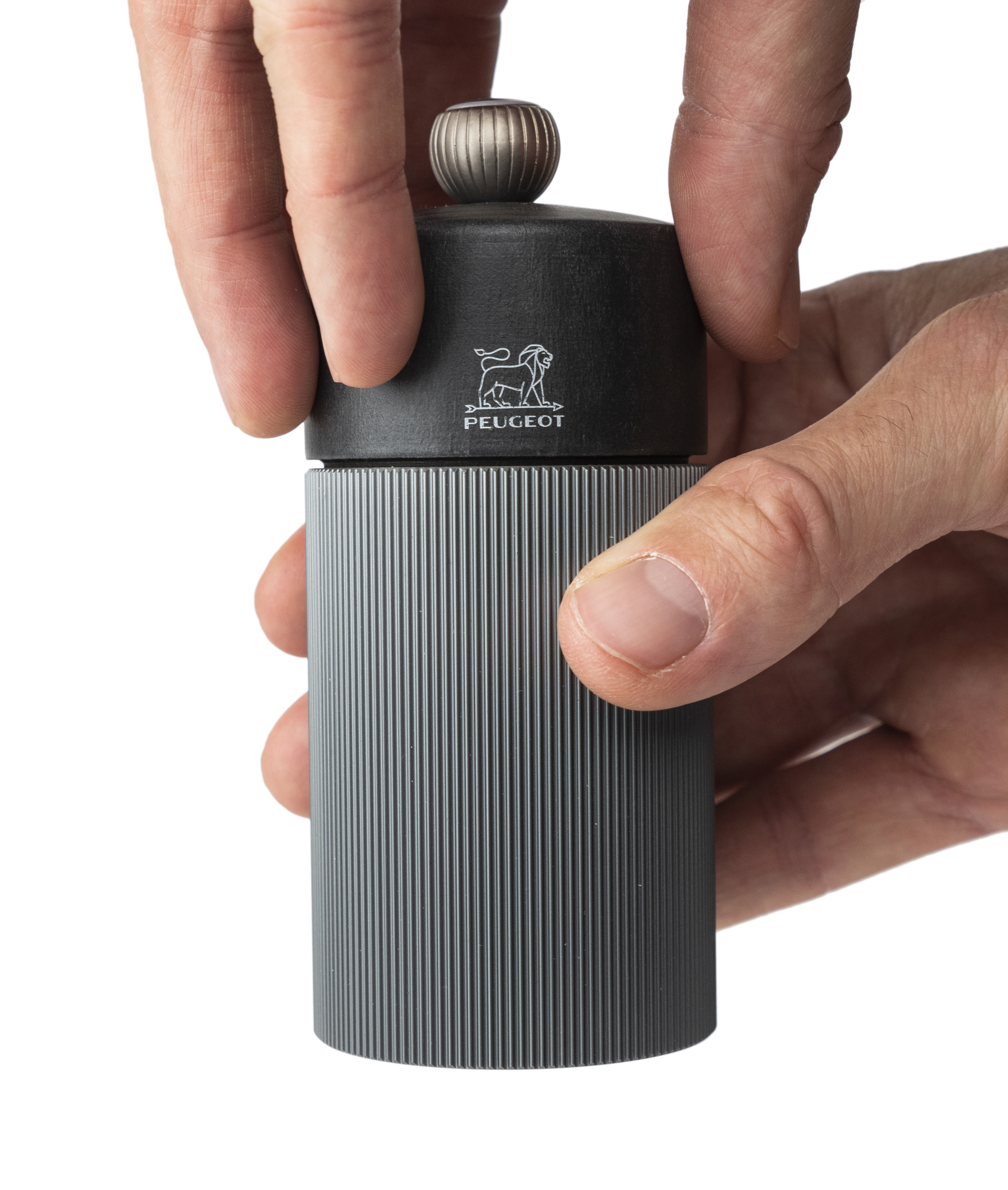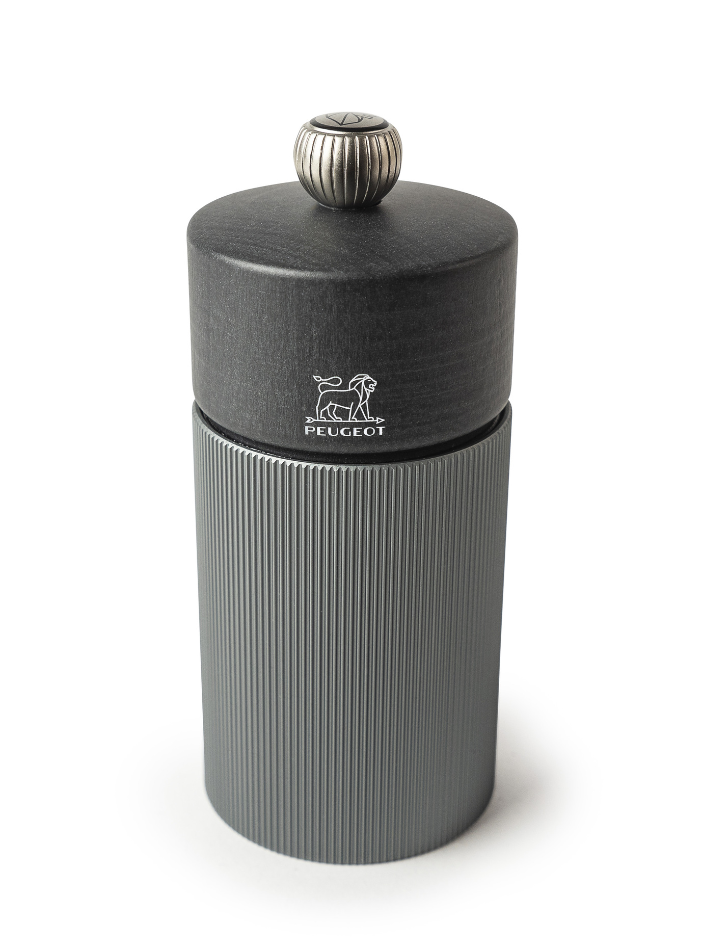 The striated body of the Line mill is adorned with a natural wooden top to produce an eye-catching graphical effect that plays with the light. This peppar mill sits perfectly in the hand. Its steel mechanism comes with a lifetime warranty and provides a simple and effective way of adjusting the grind setting using the button on top of the mill.