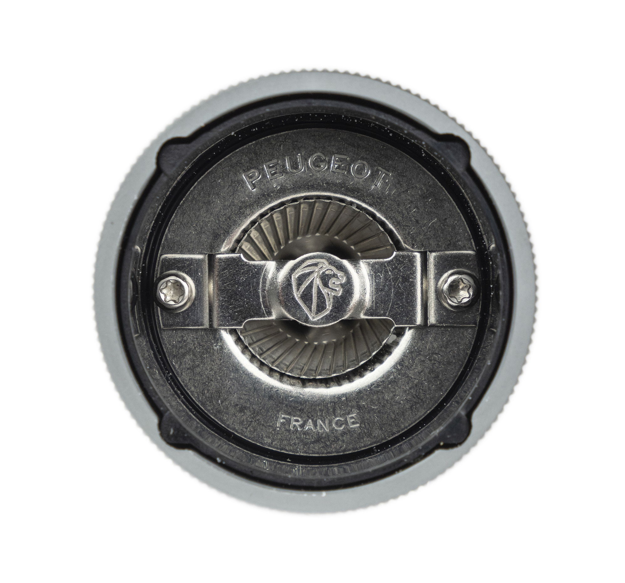 Grind adjustment button: the more the button is screwed, the finer the grind, and vice versa