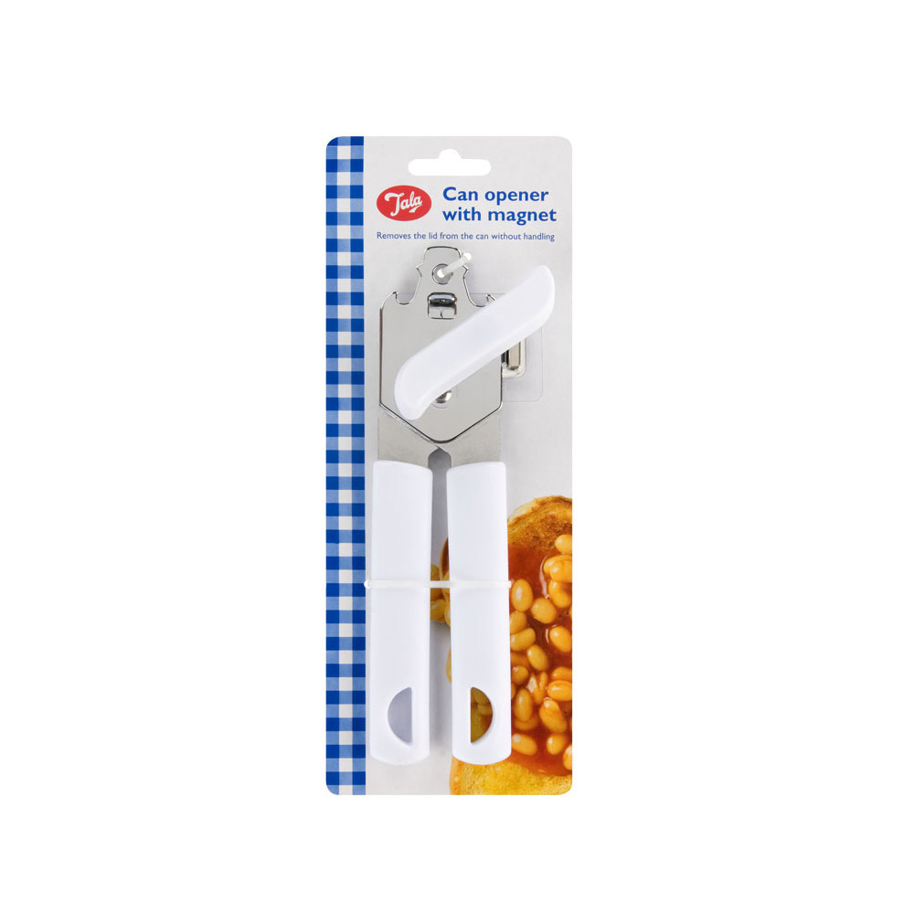 Säilykepurkinavaaja, joka poistaa kannen helposti purkista. Magneetin avulla se nostaa purkin kannen irti ja vähentää riskiä leikata itseään.